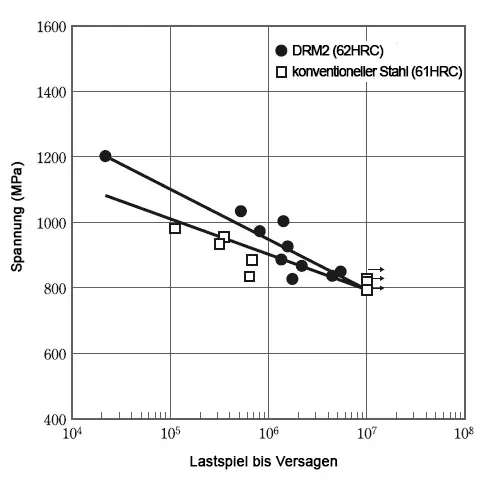 | DRM2 (65 HRC) | 1.120°C, ölgehärtet | 560°C, zweifach angelassen |