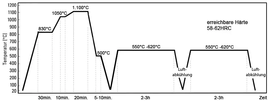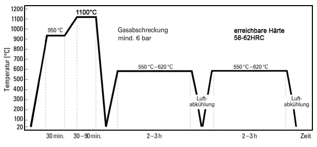 550 - 620°C min. 2x Anlassen, Luftabkühlung |