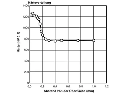 Die Oberflächenhärte erreicht hier 1.250 HV mit NHD = 0,2 mm.